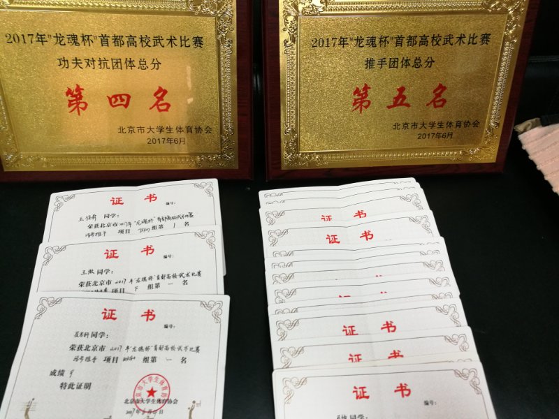 2017年6月3日,由北京市大学生体育协会主办的“龙魂杯”首都高校武术比赛在房山区良乡体育中心拉开帷幕。本届比赛包括来自北大、北工商、北体大等33个学校的代表队伍,共计465名高校大学生参赛。比赛分武术套路、太极推手、功夫对抗赛三大项目。