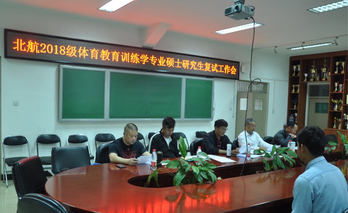 2017年9月27日北航2018级体育教育训练学专业研究生复试工作会在北航体育部召开,根据北航研究生院、人文学院、体育部研究生办公室相关规定和要求,参加本次复试工作的成员:刘国庆、陈松、陈和霖、徐文泉、徐昆,以及前来复试的学生。