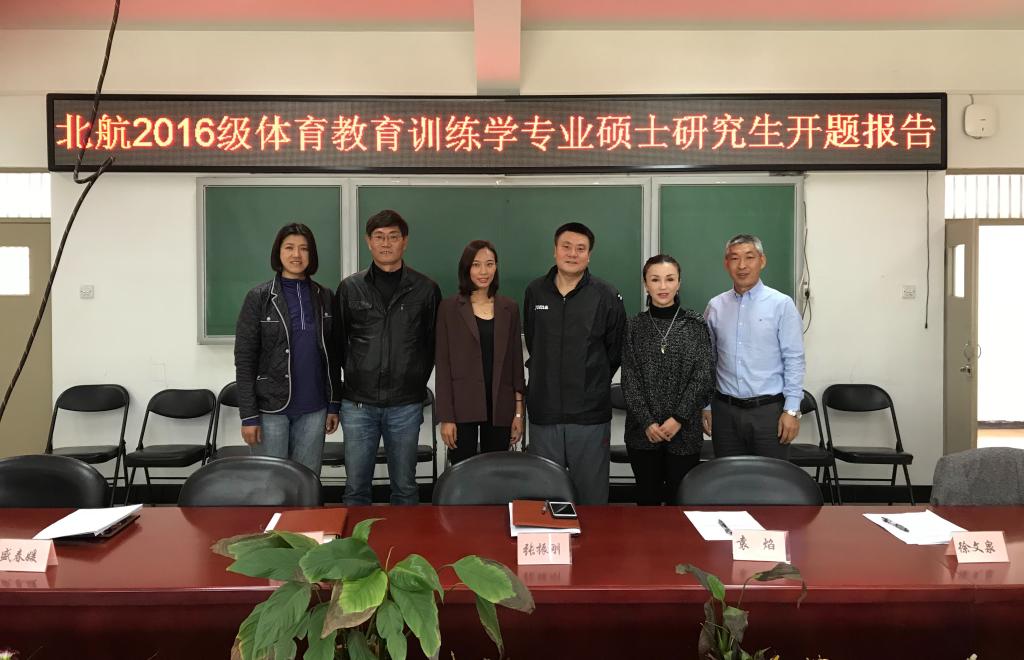 2017年10月11日在北航体育部召开了北航2016级体育教育训练学专业硕士研究生开题报告,出席本次开题报告的专家组成员:张振刚、刘国庆、袁焰、徐文泉、盛春媛,开题报告人员:祁琳。