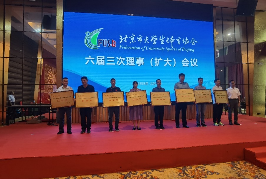 2022年8月23—24日,北京市大学生体育协会六届三次理事(扩大)会议在乔波国际会议中心隆重召开。会议上对2021年阳光体育联赛优胜学校进行表彰。北航荣获2021年首都高等学校阳光体育联赛“朝阳杯”和2021年首都高等学校阳光体育联赛“阳光杯”,这也是北航近年来首次在同年捧得双料奖杯。