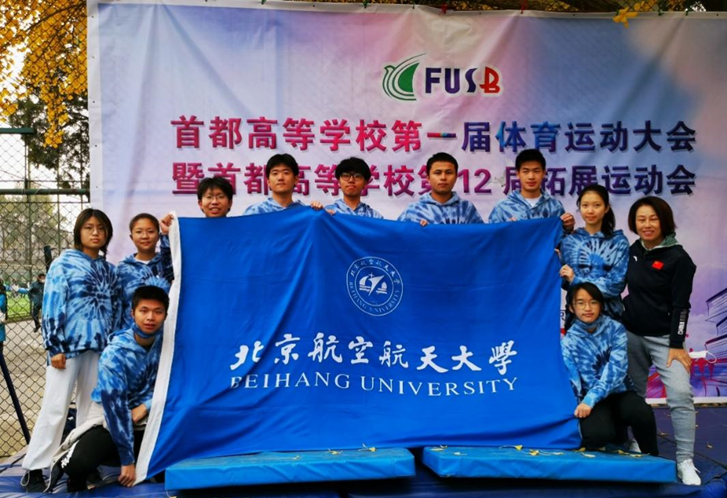 11月6日,由北京市大学生体育协会主办的首都高等学校第12届拓展运动会在北京大学举办,34所在京高校组队参赛。北航拓展代表队由宫美凤、王菁菁两位教练带领,队员包括:能源与动力工程学院连卓奕、吴庚时、刘云轩,交通学院李昂、熊天雨、何胜,宇航学院徐思璐,飞行学院依木兰江,物理学院翁至言,知行书院周子琪、谭斯韵。