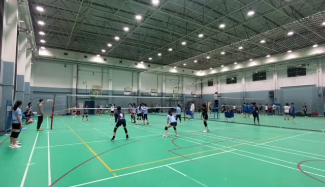 本次比赛是本学期第三场校际排球交流活动。赛前三支队伍早早地来到赛场热身,队员们在场地上慢跑、打垫,以精神饱满的状态迎接比赛。