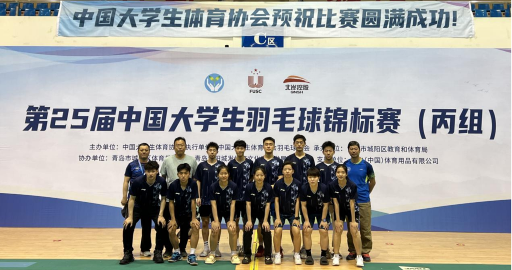 5月23日至5月31日,由中国大学生体育协会主办的第25届中国大学生羽毛球锦标赛在青岛市城阳区举办。比赛共汇集了全国41所高校、共计600余名学生参加。体育部付庆镕、石磊两位老师带领羽毛球高水平运动队12名队员参加比赛,男子团体获得第5名,女子团体闯入16强。