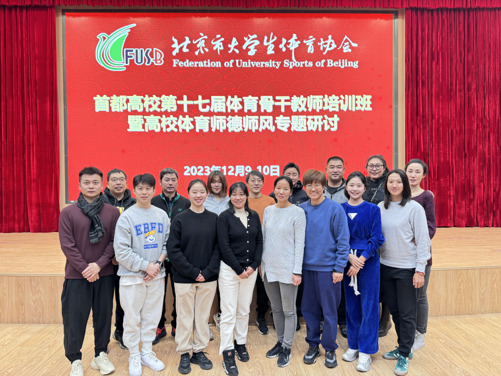 2023年12月9-10日,由北京市大学生体育协会主办,北京市大学生体育协会教学群体科研部承办的首都高校第十七届体育骨干教师培训班暨高校体育师德师风专题研讨在中国科学院大学(怀柔校区)举办。北航体育部16名中青年教师参加本次培训,是近年来人数最多的一次。