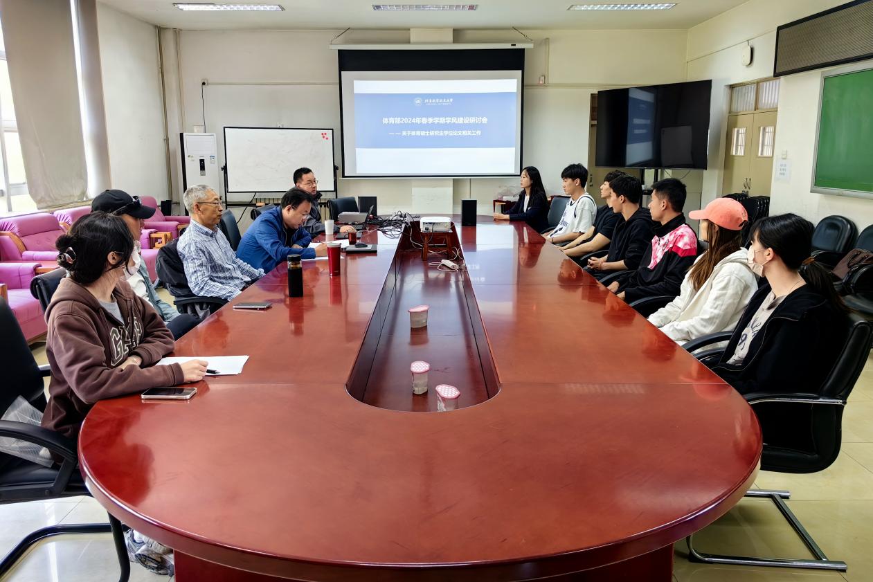 4月24日,体育部召开春季学期学风建设研讨会,主任、书记、研究生督导组专家成员、导师代表、研究生教学秘书、辅导员和全体研究生参会。