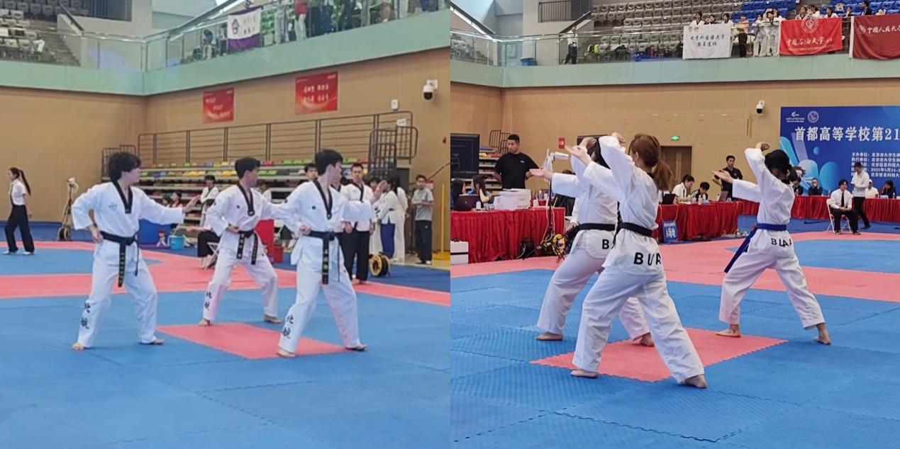5月24日-25日,首都高校第21届跆拳道锦标赛在北京信息科技大学(沙河校区)体育馆举行,共吸引39所高校的637名师生参加。体育部汪芸、陈岩老师带领跆拳道队16名队员参赛。队员们发挥出色,斩获2项冠军、4项亚军和4项季军,刷新历史最好成绩。